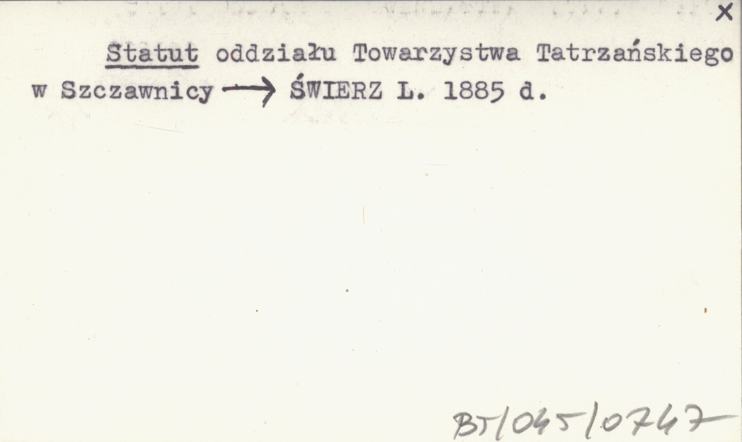 Statut oddziału Towarzystwa Tatrzańskiego w Szczawnicy.