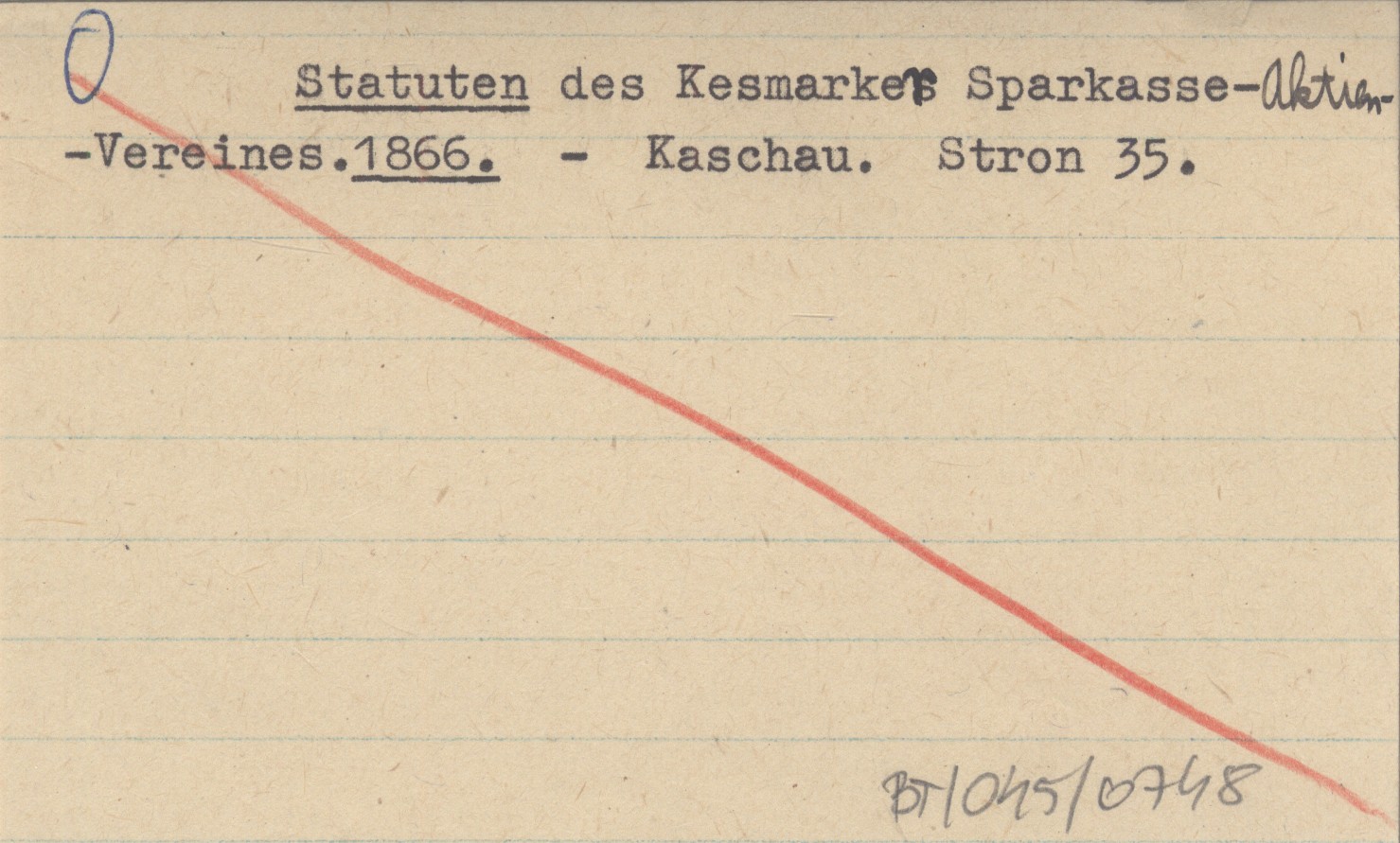 Statuten des Kesmarker Sparkasse-Aktien-Vereines. 1866
