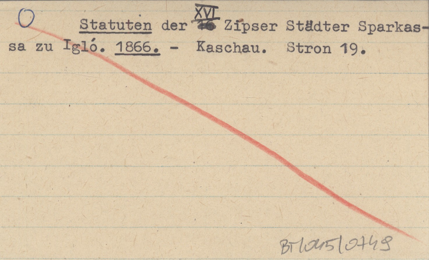 Statuten der XVI Zipser Städter Sparkassa zu Igló. 1866
