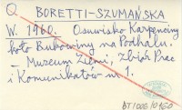 BORETTI-SZUMAŃSKA W. 1956 Zdjęcia geologiczne osadów czwartorzędu i fliszu w dolinie Białki na odcinku Łysa Polana - Czarna Góra.