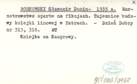 BORKOWSKI Sławomir Dunin- 1935 a Marnotrawstwo oparte na fikcjach. Tajemnice budowy kolejki linowej w Tatrach.