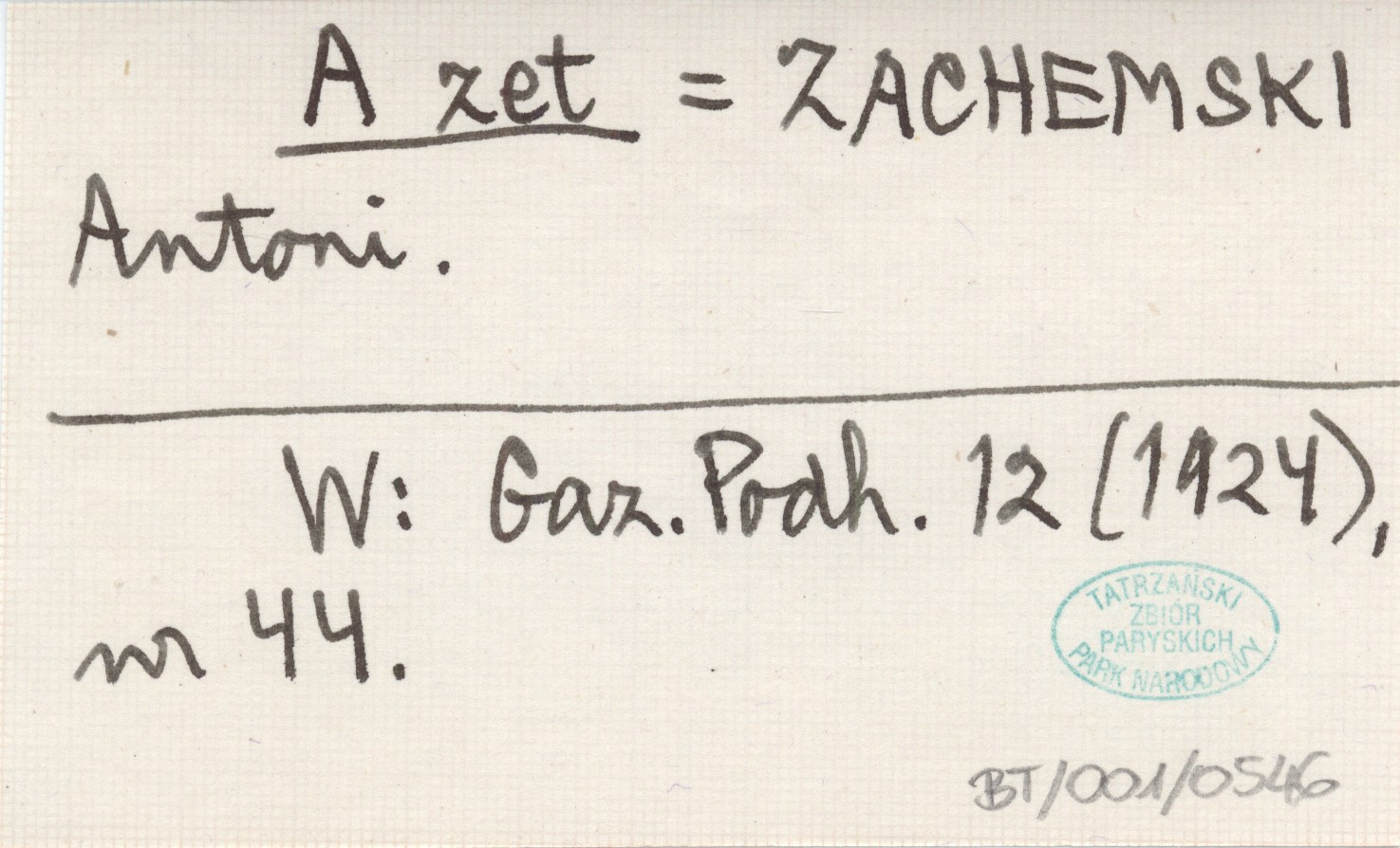 A zet ZACHEMSKI Antoni Gazeta Podhalańska 12 (1924), nr 44.