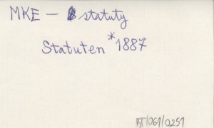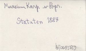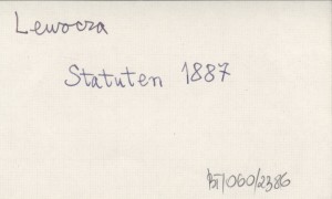 Leutschau , 15 s., 19x12 cm. Data statutu: Igló, am 21. November 1886. Podpisy: Koloman Páter (sekretarz), Graf Albin Csáky (prezes).