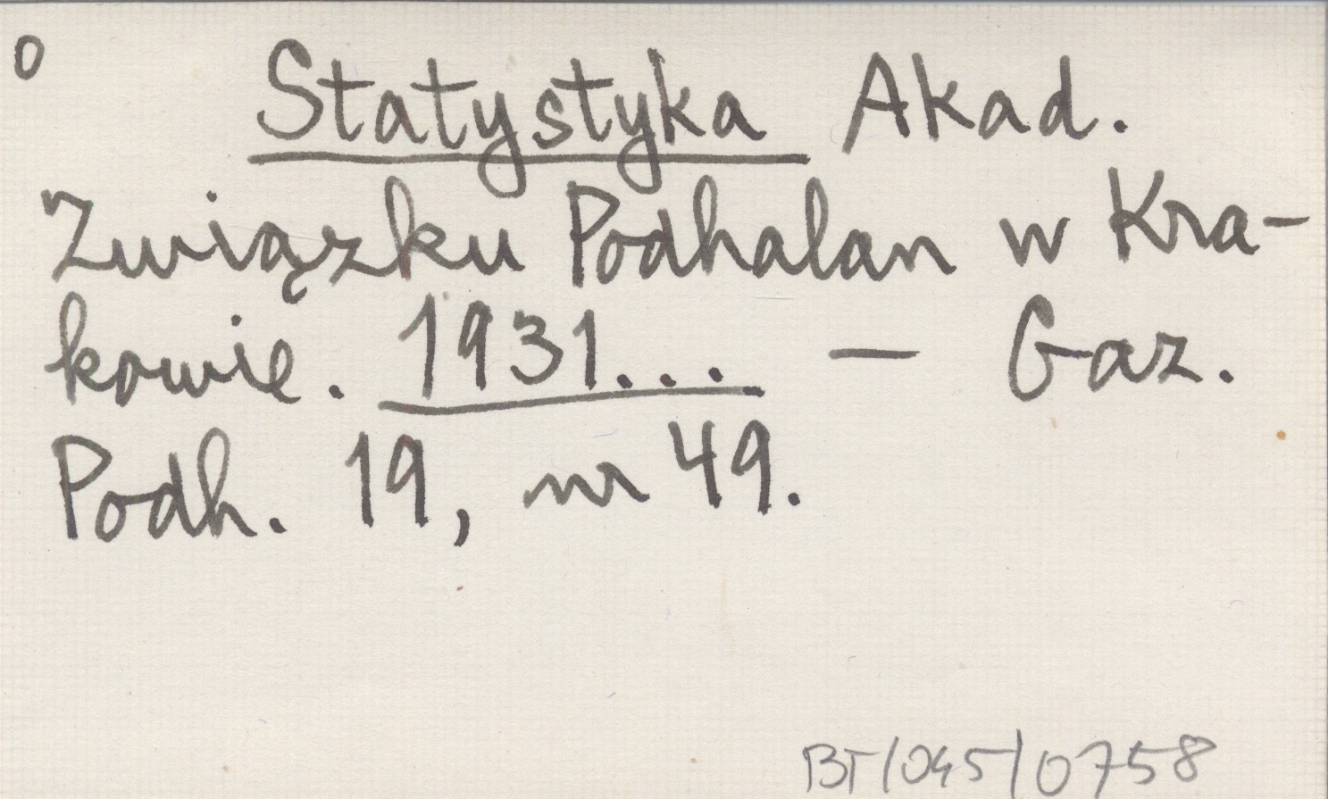 Statystyka Akad. Związku Podhalan w Krakowie. 1931...