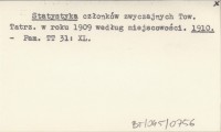 Statystyka członków zwyczajnych Tow. Tatrz. w roku 1909 według miejscowości. 1910