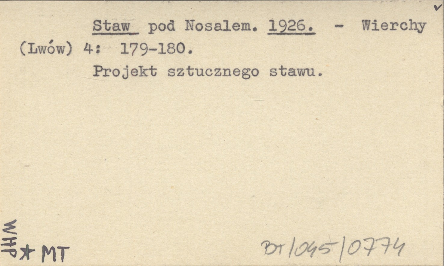 Wierchy (Lwów) , 4: 179-180. Projekt sztucznego stawu.