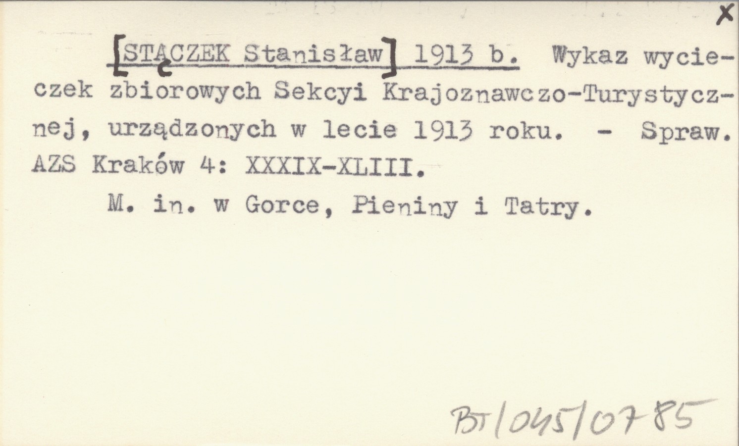[STĄCZEK Stanisław] 1913 b Wykaz wycieczek zbiorowych Sekcyi Krajoznawczo-Turystycznej, urządzonych w lecie 1913 roku.