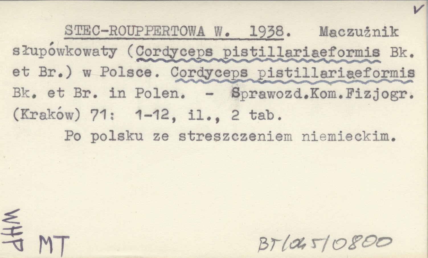 STEC-ROUPPERTOWA W. 1938 Maczużnik słupówkowaty (Cordyceps pistillariaeformis Bk. et Br.) w Polsce. Cordyceps pistillariaeformis Bk. et Br. in Polen.