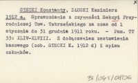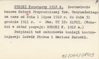 STECKI Konstanty 1912 d Zestawienie kasowe Sekcyi Przyrodniczej Tow. Tatrzańskiego za czas od dnia 1 lipca 1910 r. do dnia 31 grudnia 1911 r.