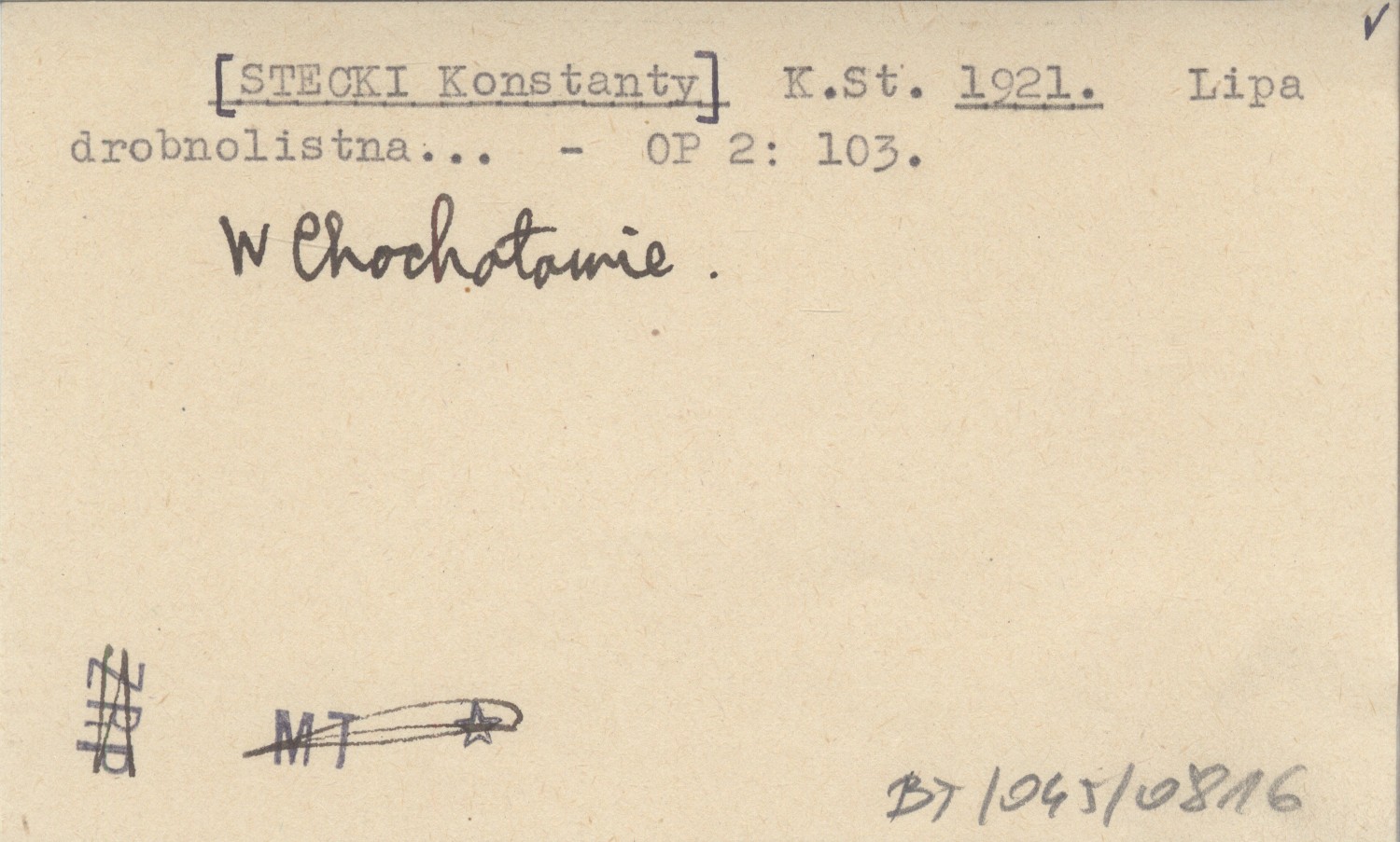 K. St. [STECKI Konstanty] 1921 Lipa drobnolistna...