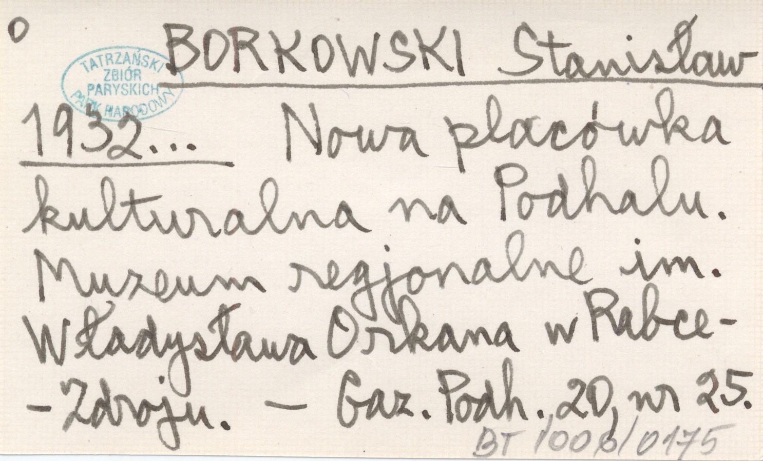 BORKOWSKI Stanisław 1932... Nowa placówka kulturalna na Podhalu. Muzeum regjonalne im. Władysława Orkana w Rabce-Zdroju.
