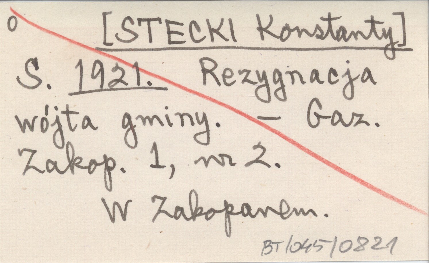 S. [STECKI Konstanty] 1921 Rezygnacja wójta gminy.