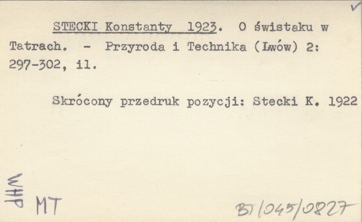 Przyroda i Technika (Lwów) , 2: 297-302, il. Skrócony przedruk pozycji: STECKI K. 1922.