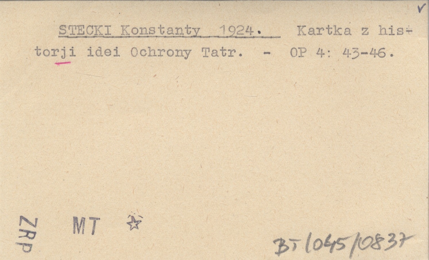 STECKI Konstanty 1924 Kartka z historji idei Ochrony Tatr.