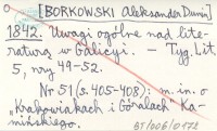 [BORKOWSKI Aleksander Dunin-] 1842 Uwagi ogólne nad literaturą w Galicyi.