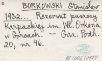 BORKOWSKI Stanisław 1932... Rezerwat puszczy Karpackiej im. Wł. Orkana w Gorcach.