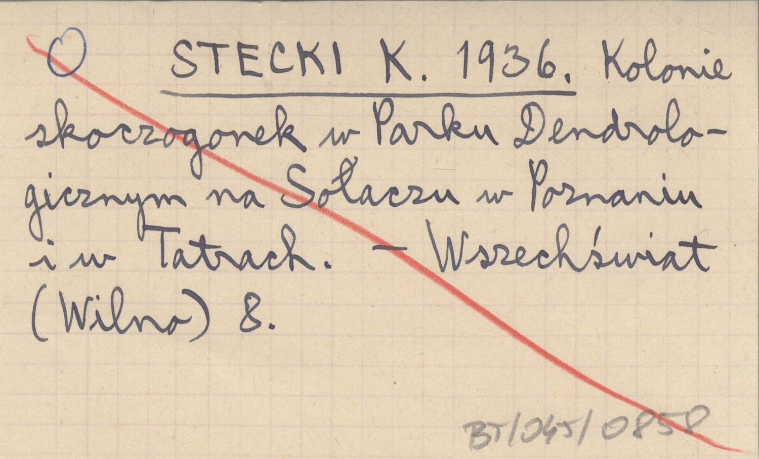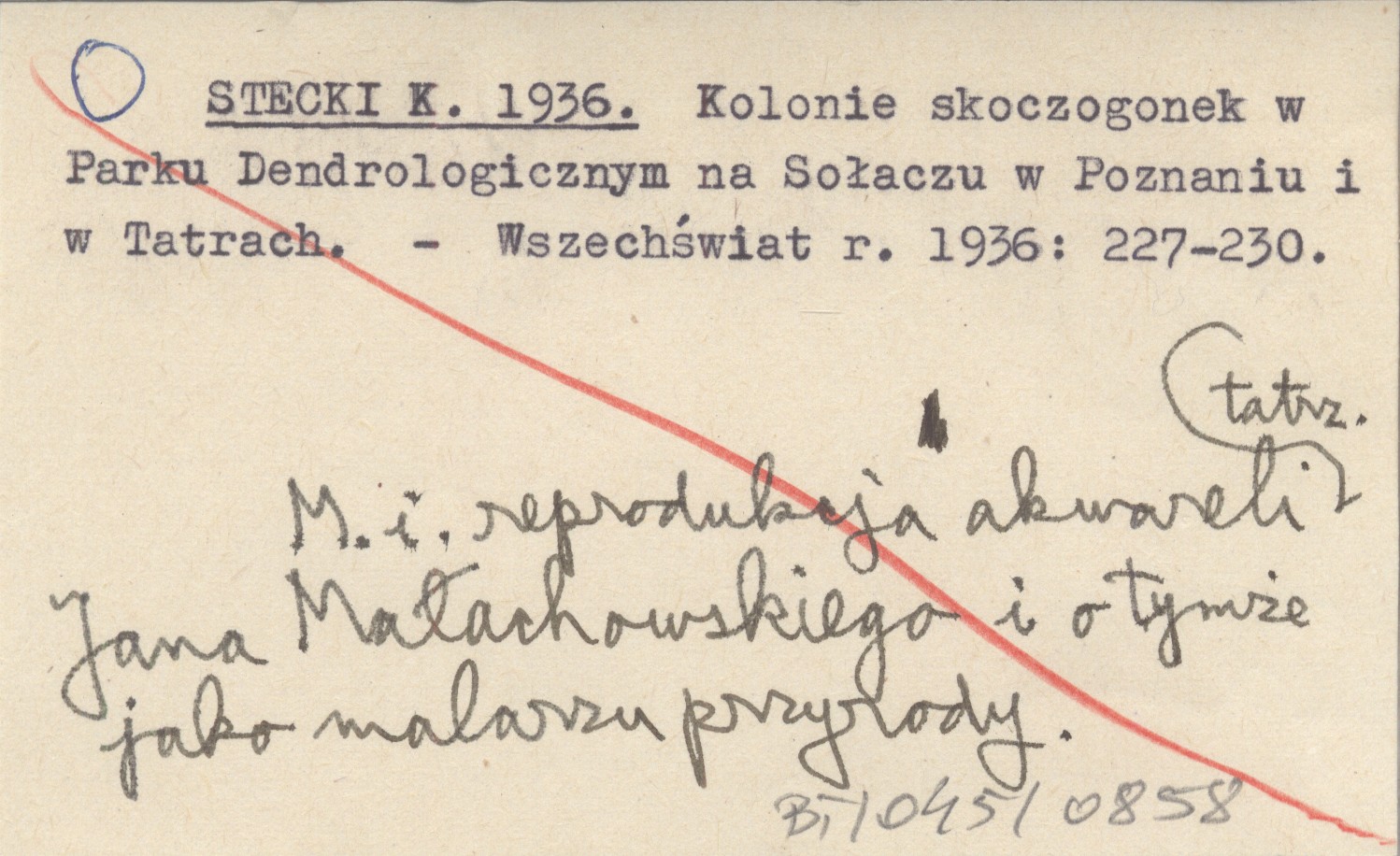 STECKI K. 1936 Kolonie skoczogonek w Parku Dendrologicznym na Sołaczu w Poznaniu i w Tatrach.