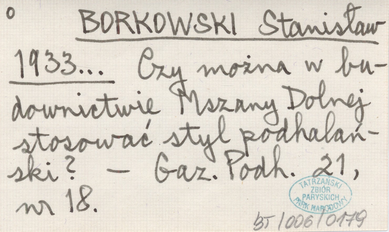 BORKOWSKI Stanisław 1933... Czy można w budownictwie Mszany Dolnej stosować styl podhalański?