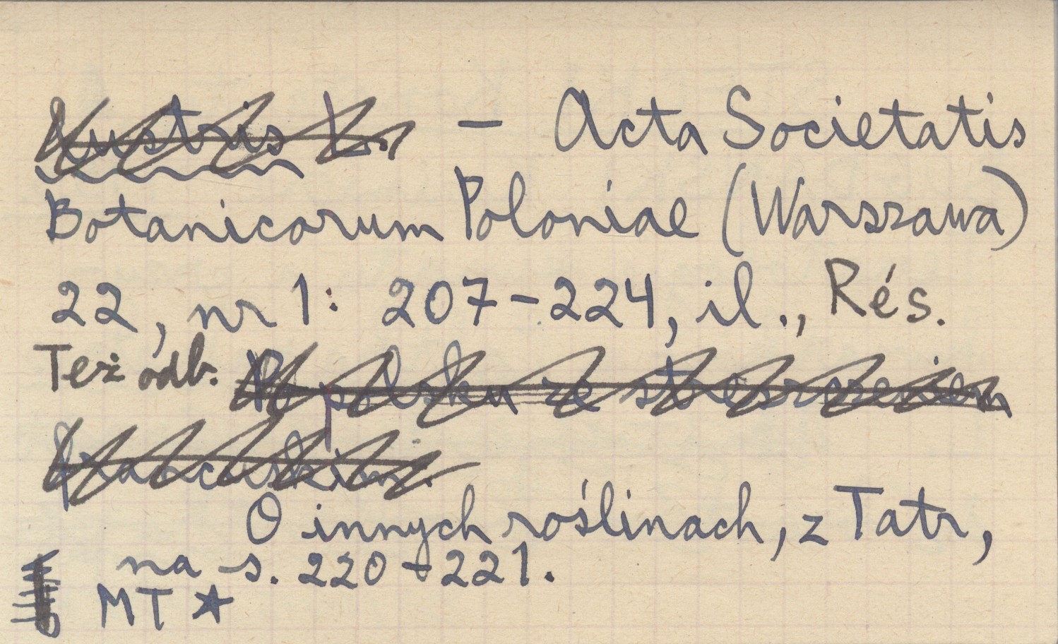 Acta Societatis Botanicorum Poloniae (Warszawa) , 22, nr 1: 207-224, il., Rés. O innych roślinach, z Tatr, na s. 220-221. Też odb.