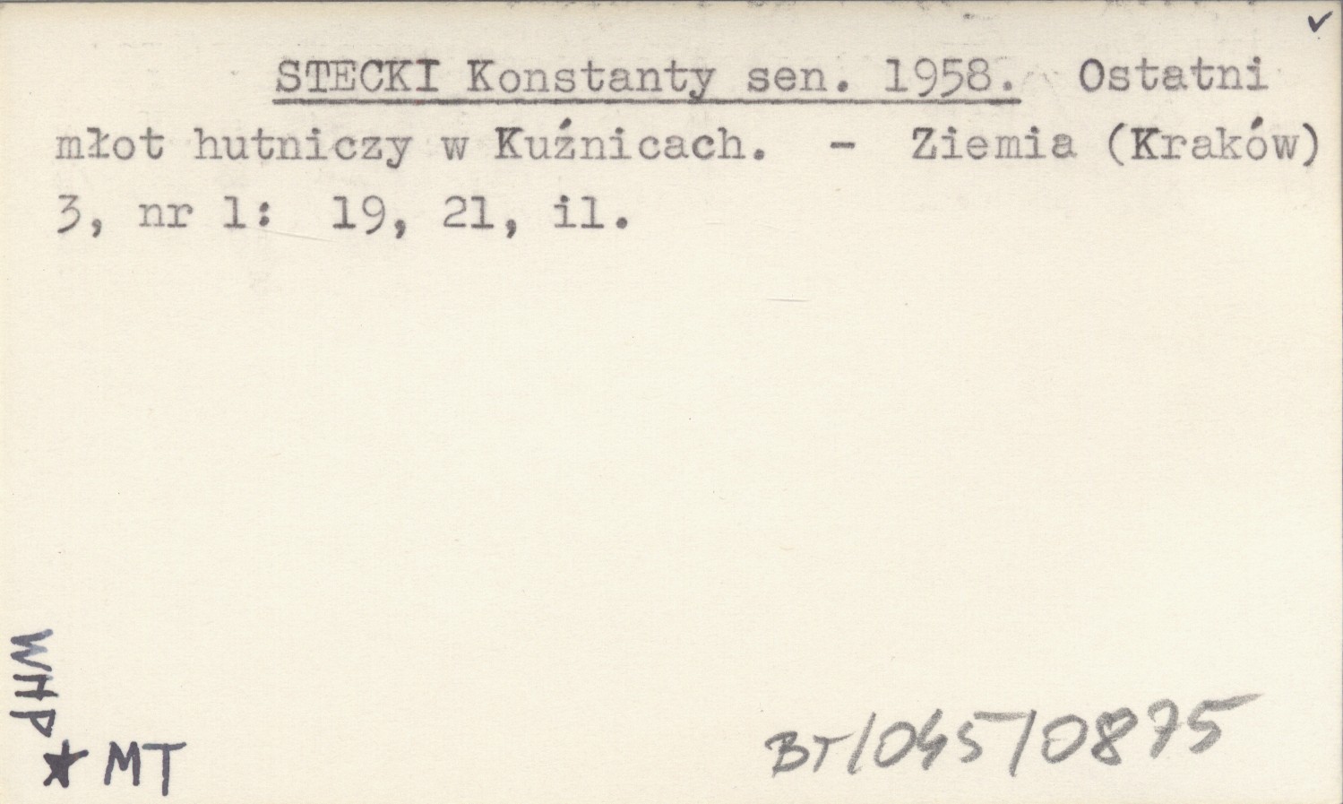 STECKI Konstanty sen. 1958 Ostatni młot hutniczy w Kuźnicach.
