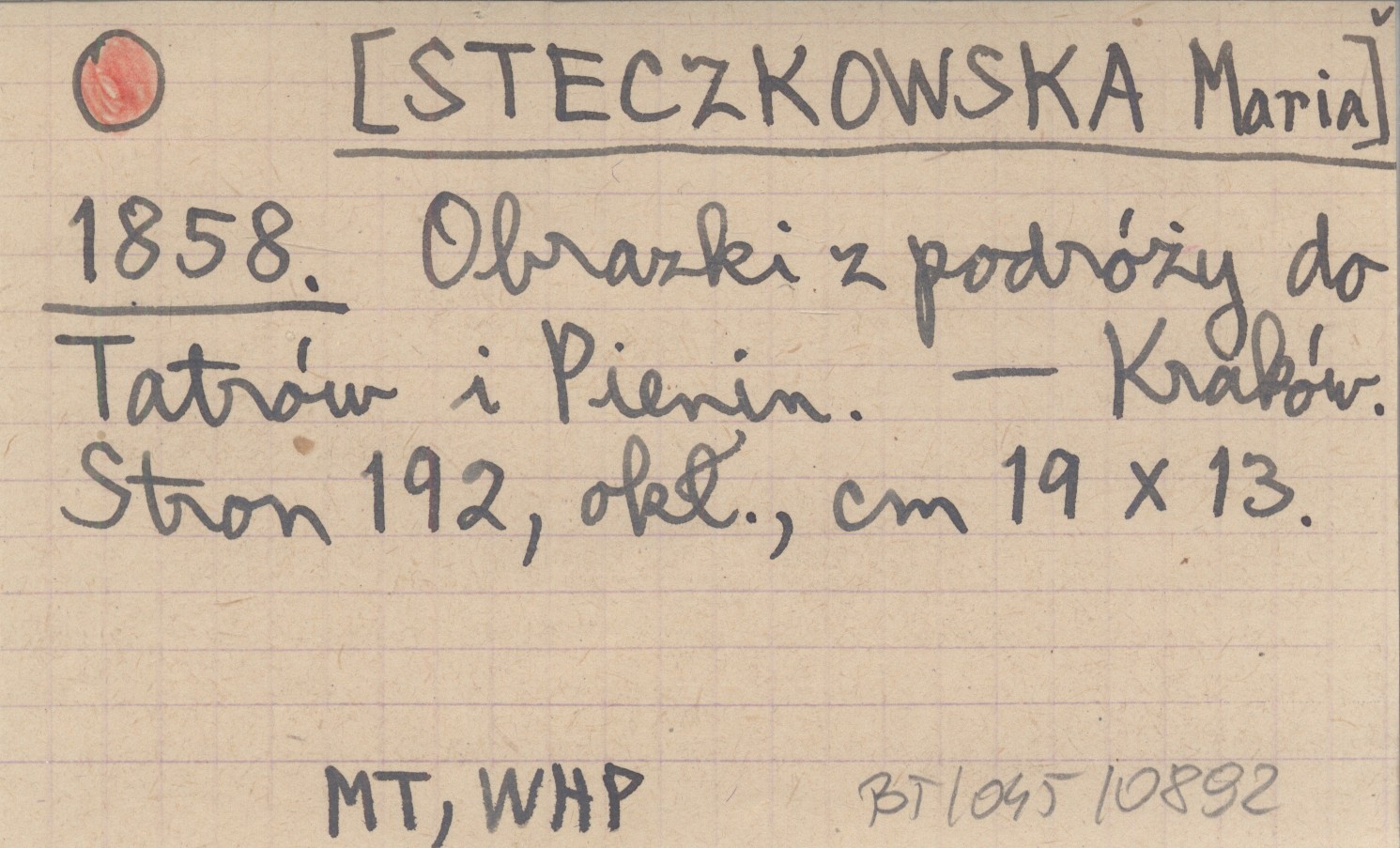 [STECZKOWSKA Maria] 1858 Obrazki z podróży do Tatrów i Pienin.