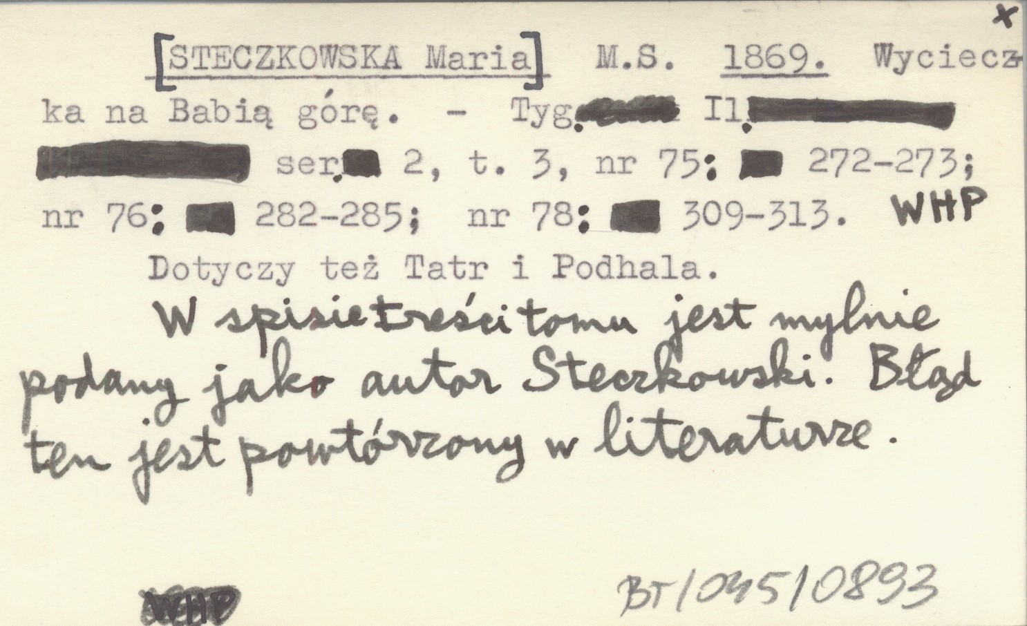 M. S. [STECZKOWSKA Maria] 1869 Wycieczka na Babią górę.
