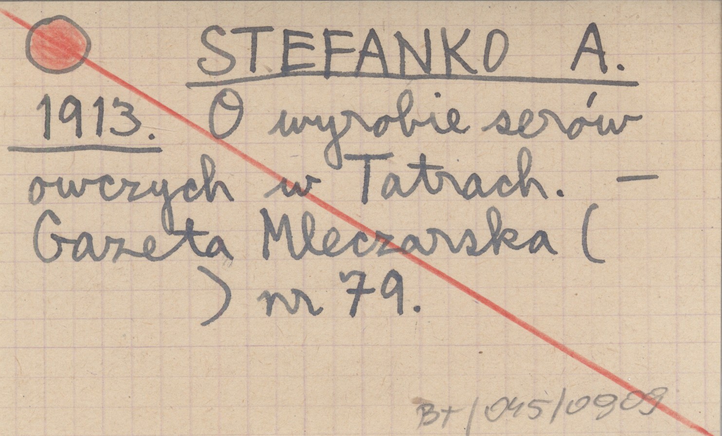 STEFANKO A. 1913 O wyrobie serów owczych w Tatrach.