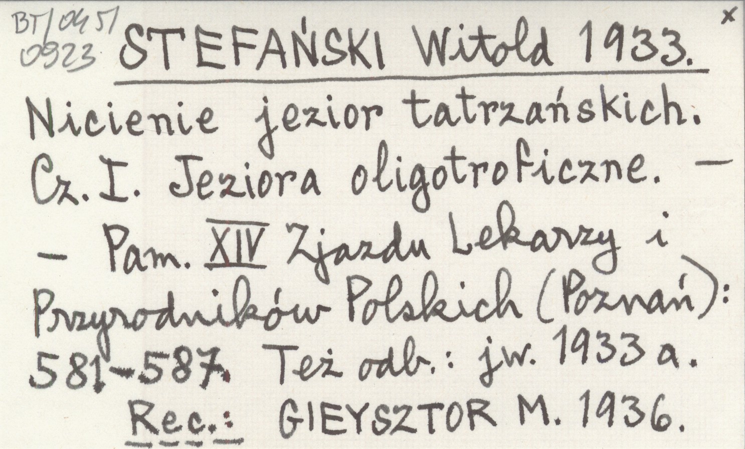 Pamiętnik XIV Zjazdu Lekarzy i Przyrodników Polskich Poznań , S. 581-587. Też odb.: jw. 1933 a. REC: GIEYSZTOR M. 1936