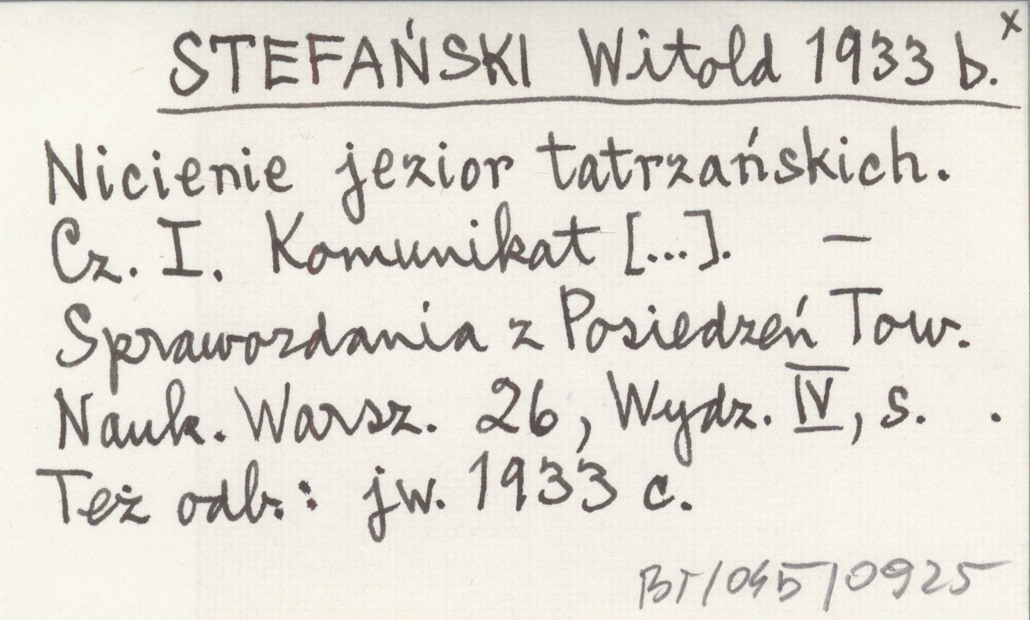Sprawozdania z Posiedzeń Towarzystwa Naukowego Warszawskiego, 26, Wydz. IV. Też odb.: jw. 1933 c.