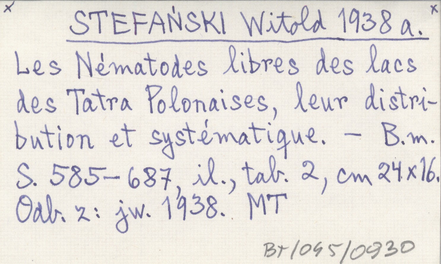 STEFAŃSKI Witold 1938 a Les Nématodes libres des lacs des Tatra Polonaises, leur distribution et systématique.