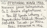 STEFAŃSKI Witold 1933 Nicienie jezior tatrzańskich. Cz. I. Jeziora oligotroficzne.