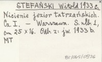 STEFAŃSKI Witold 1933 b Nicienie jezior tatrzańskich. Cz. I. Komunikat [...].