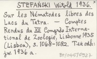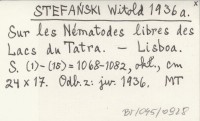 STEFAŃSKI Witold 1936 a Sur les Nématodes libres des Lacs du Tatra.