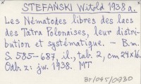 STEFAŃSKI Witold 1938 a Les Nématodes libres des lacs des Tatra Polonaises, leur distribution et systématique.