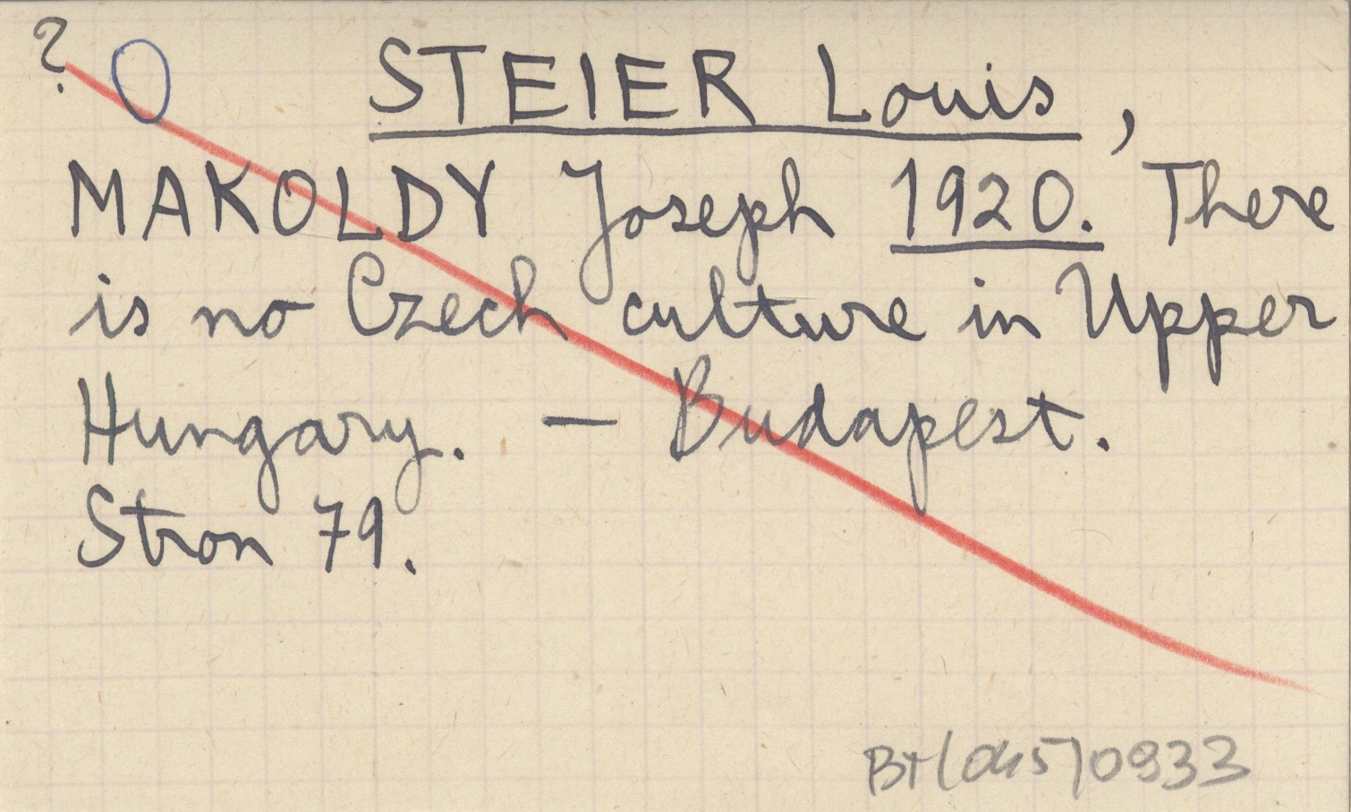 STEIER Louis MAKOLDY, Joseph. ; 1920 There is no Czech culture in Upper Hungary.
