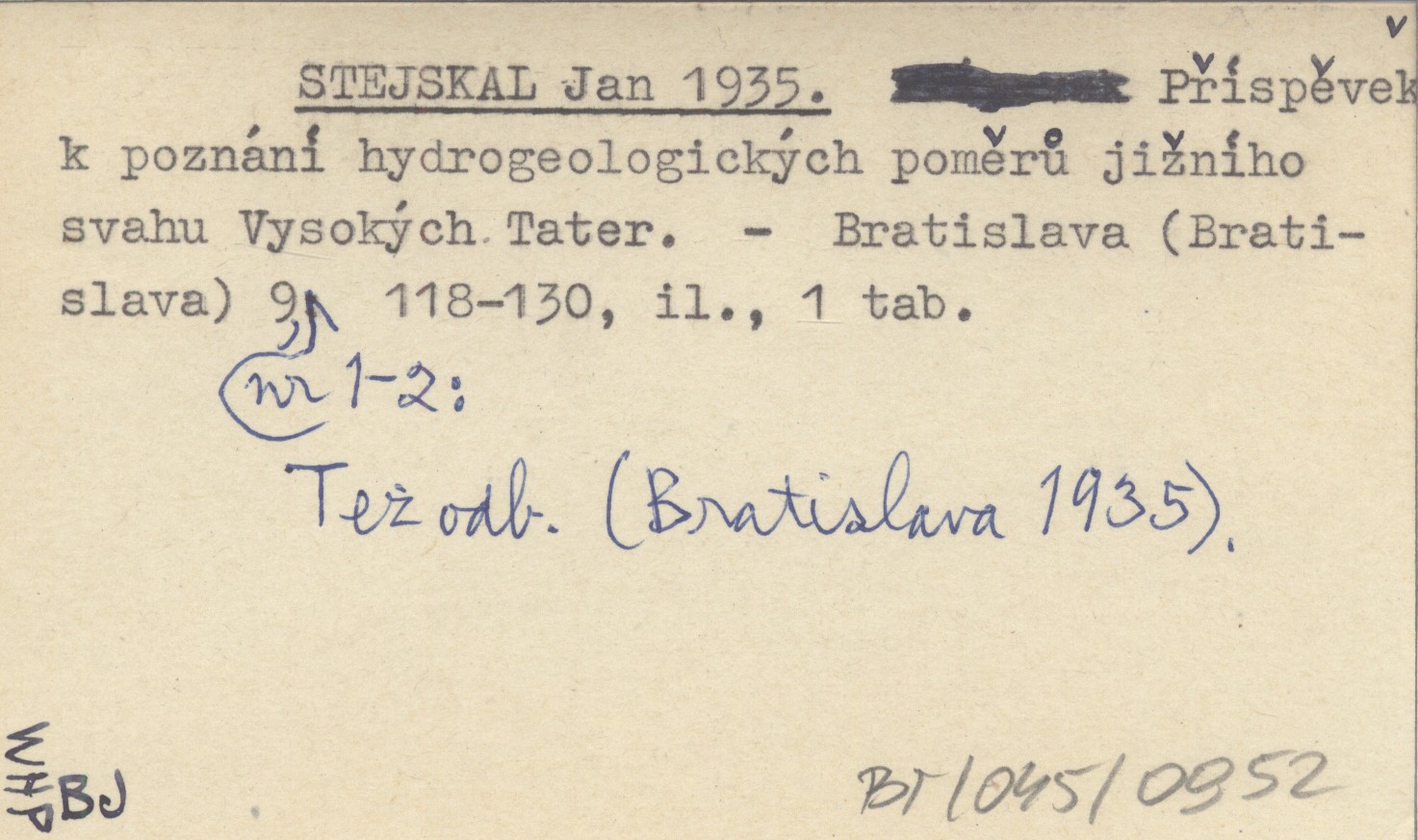 STEJSKAL Jan 1935 Pűíspìvek k poznání hydrogeologickęch pomìrù jiŸního svahu Vysokęch Tater.