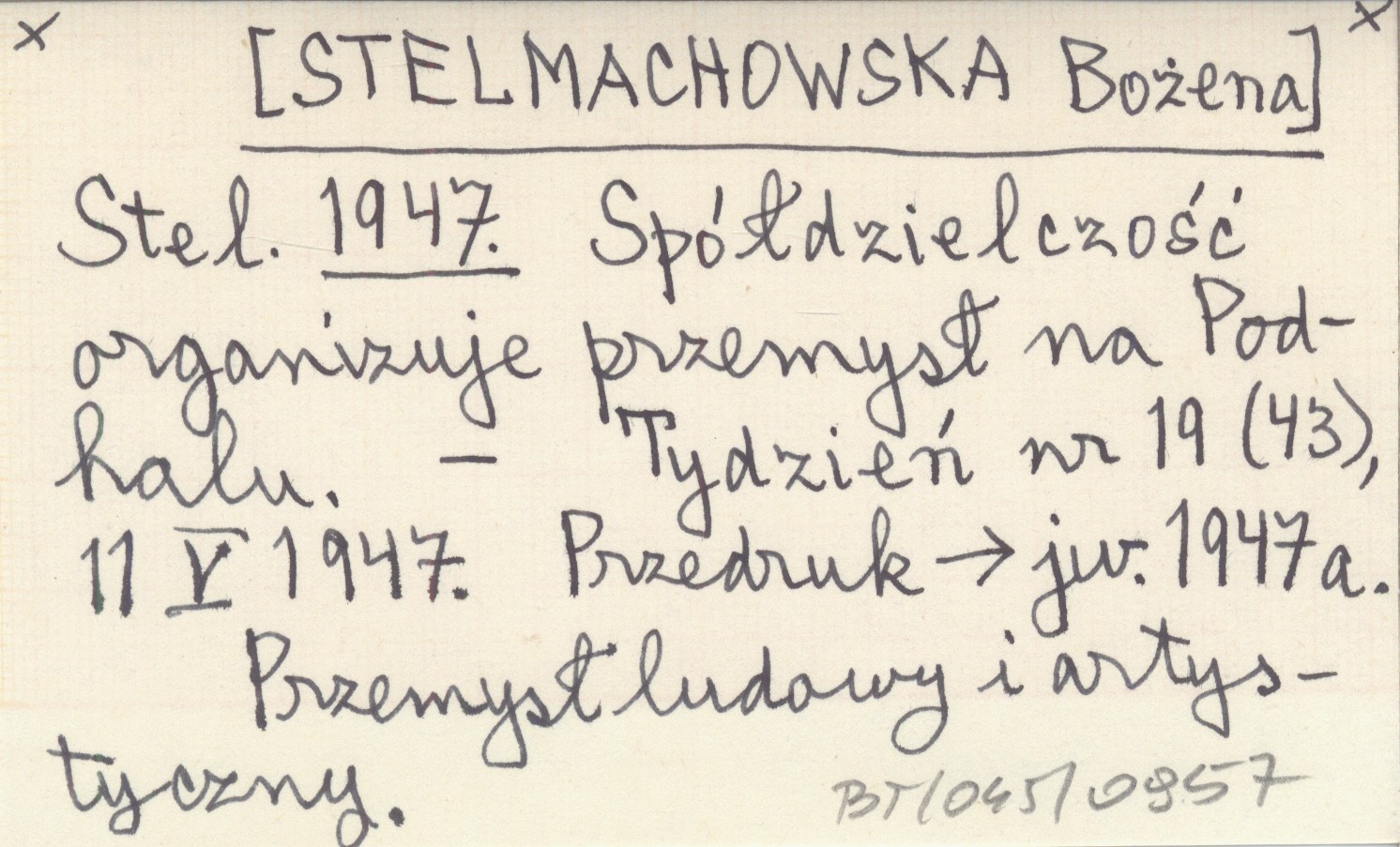 Stel. [STELMACHOWSKA Bożena] 1947 Spółdzielczość organizuje przemysł na Podhalu.