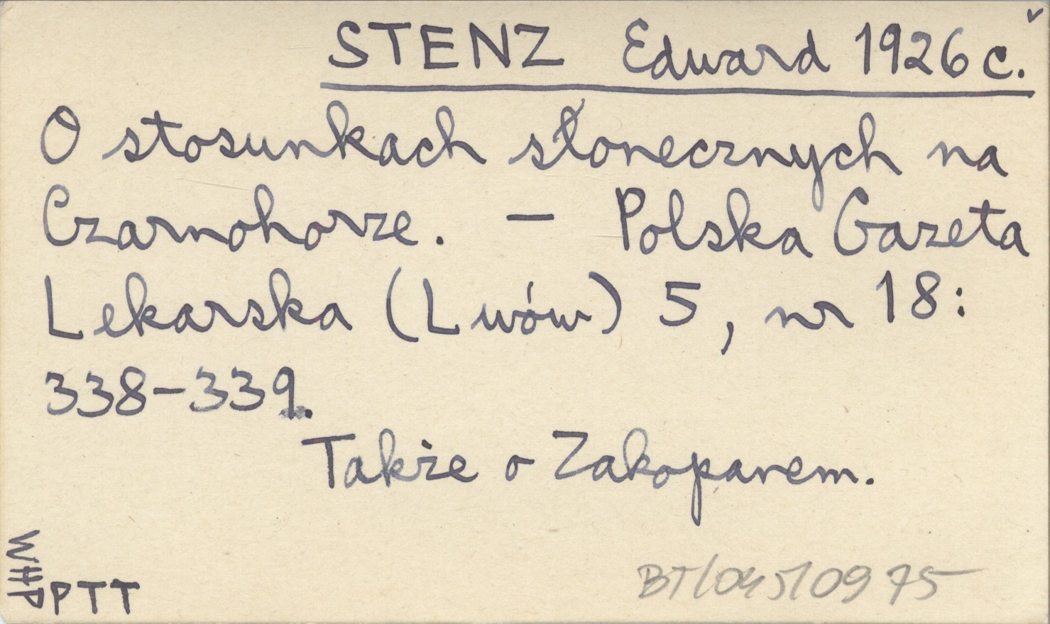 Polska Gazeta Lekarska (Lwów) , 5, nr 18: 338-339. Także o Zakopanem.