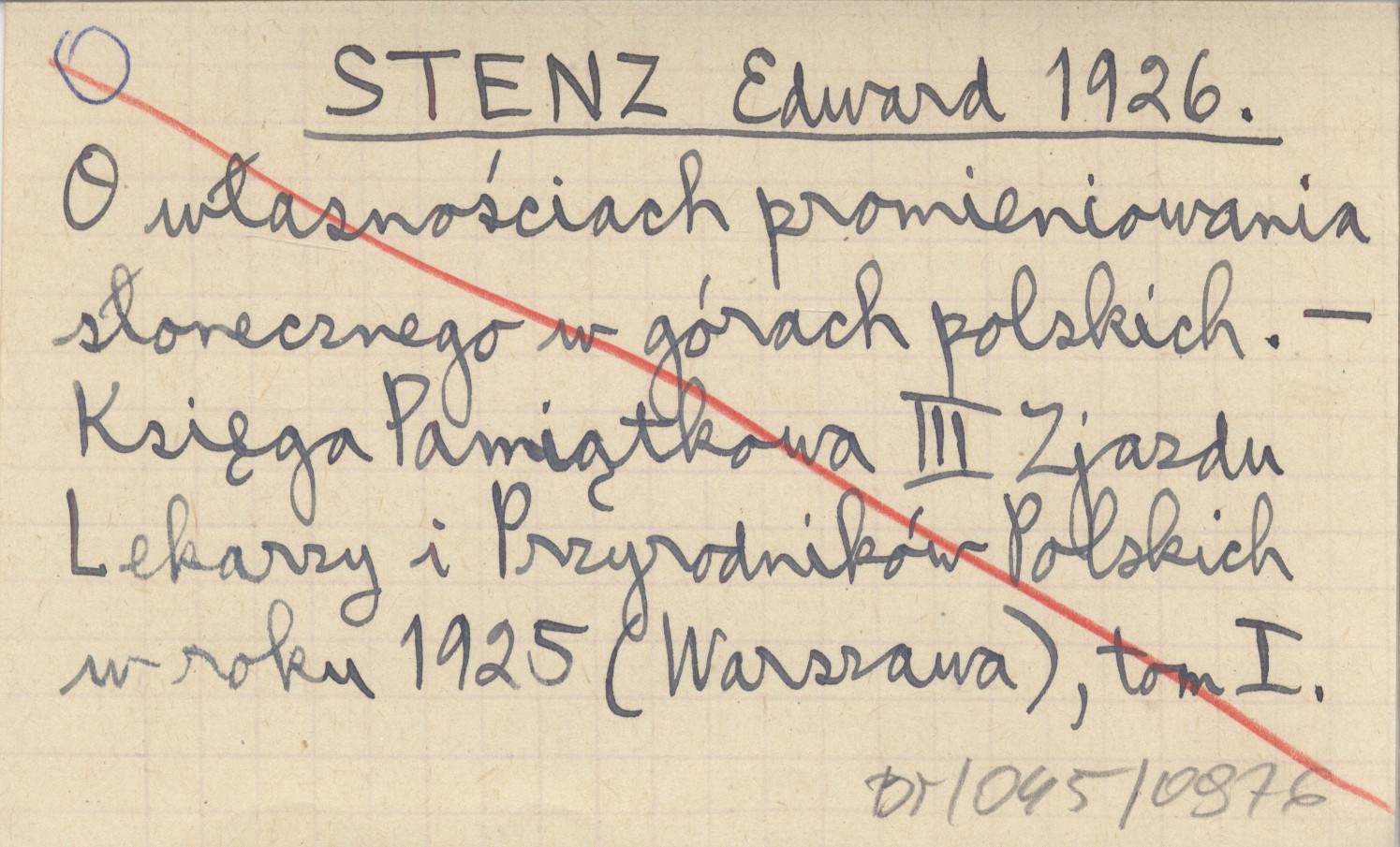 STENZ Edward 1926 O własnościach promieniowania słonecznego w górach polskich.