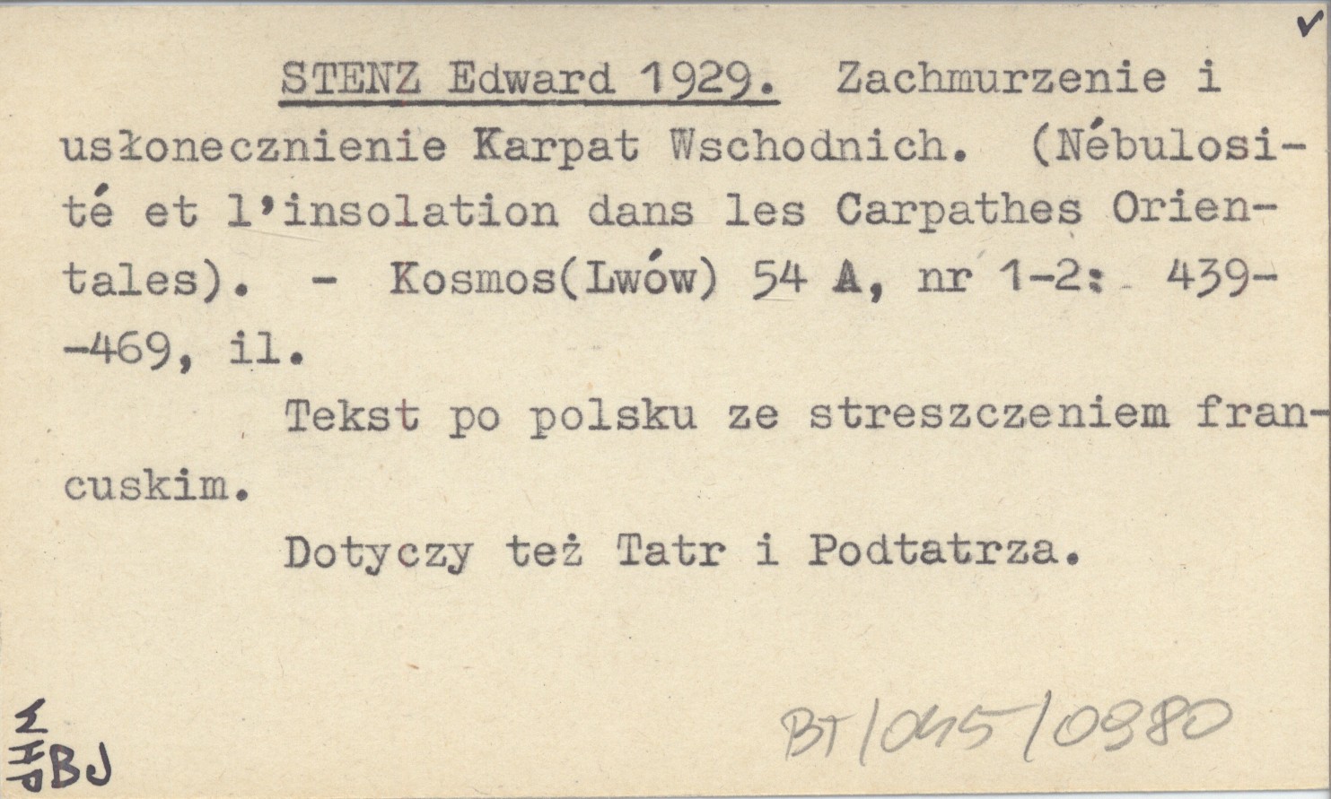 STENZ Edward 1929 Zachmurzenie i usłonecznienie Karpat Wschodnich. (Nébulosité et l'insolation dans les Carpathes Orientales).