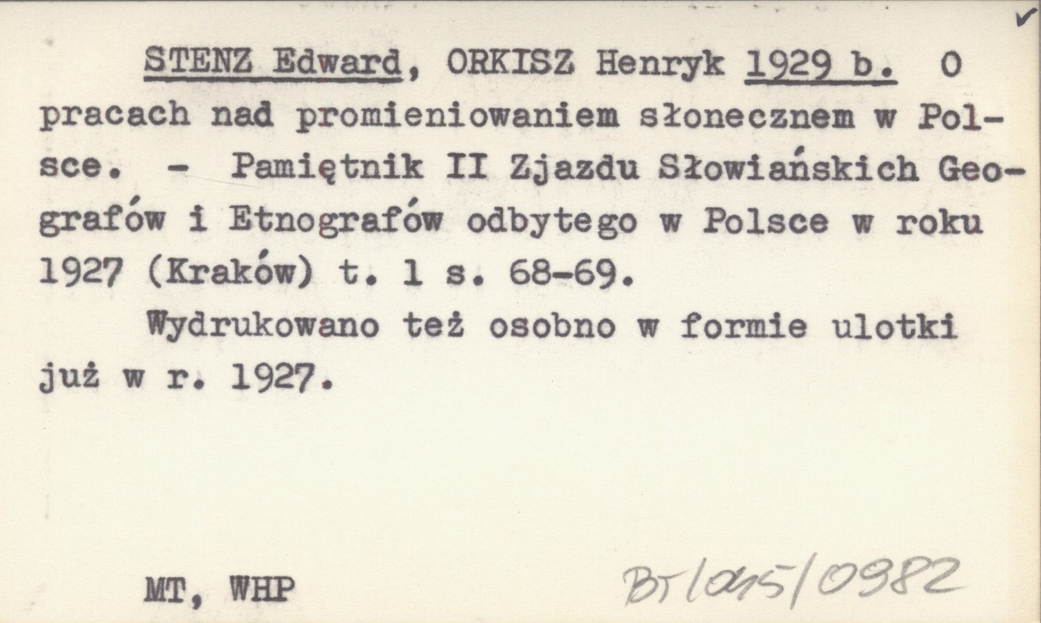 STENZ Edward ORKISZ, Henryk. ; 1929 b O pracach nad promieniowaniem słonecznym w Polsce.