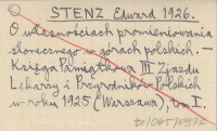 STENZ Edward 1926 O w³asno¶ciach promieniowania s³onecznego w górach polskich.