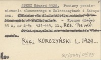 STENZ Edward ORKISZ, Henryk. ; 1929 b O pracach nad promieniowaniem s³onecznym w Polsce.