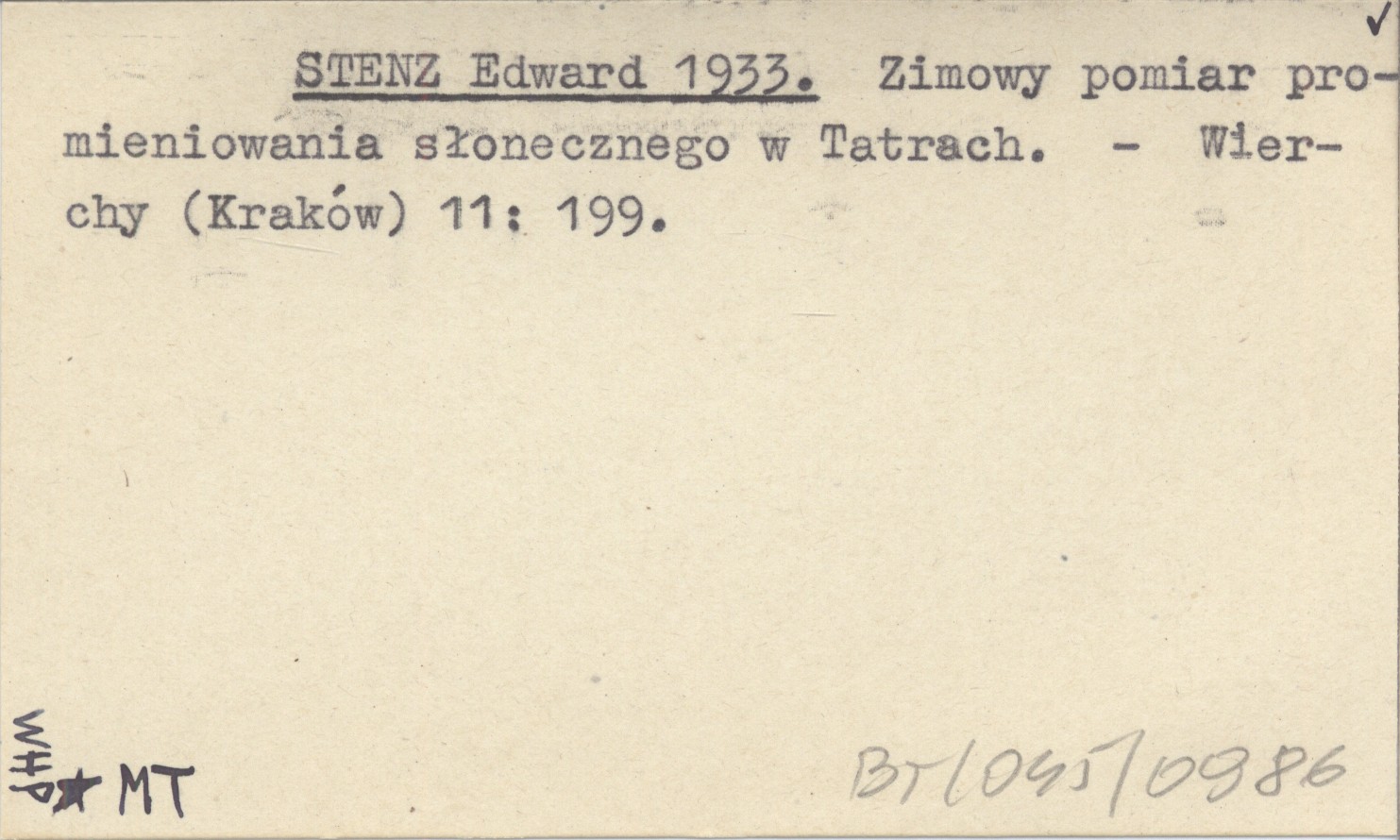 STENZ Edward 1933 Zimowy pomiar promieniowania słonecznego w Tatrach.