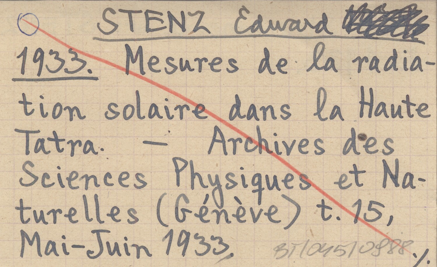 STENZ Edward 1933 Mesures de la radiation solaire dans la Haute Tatra.