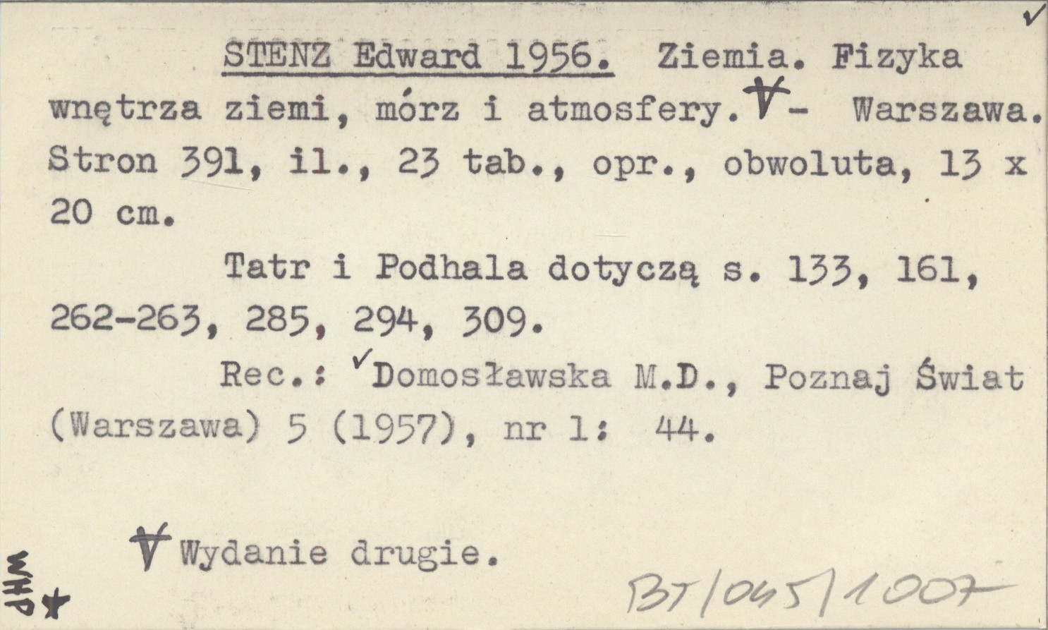 STENZ Edward 1956 Ziemia. Fizyka wnętrza ziemi, mórz i atmosfery.