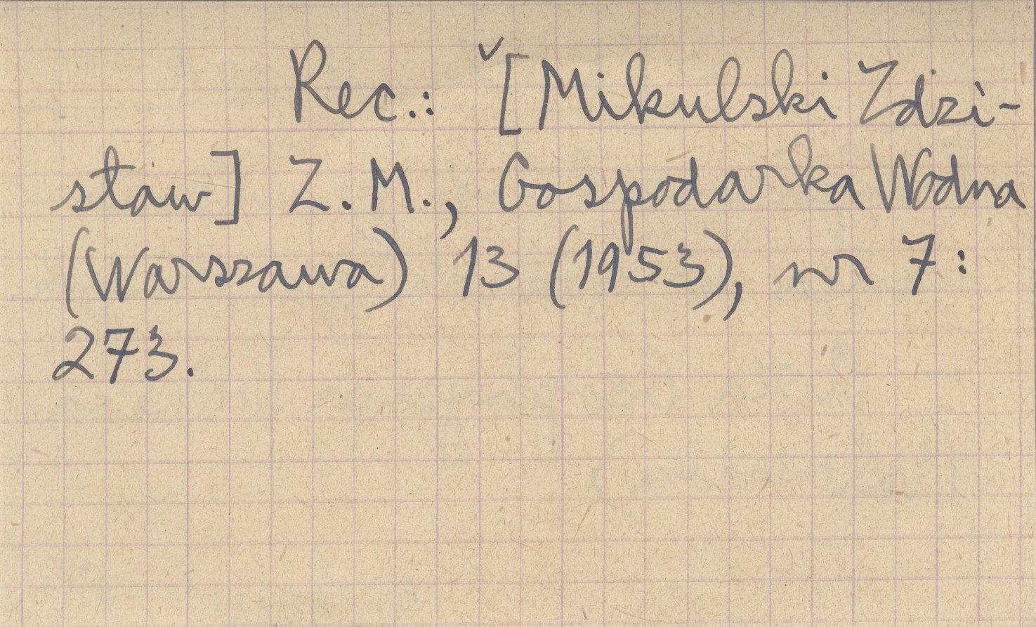 Acta Geophysica Polonica (Warszawa) , REC: [MIKULSKI Zdzisław] Z. M., Gospodarka Wodna (Warszawa) 13 (1953), nr 7: 273.