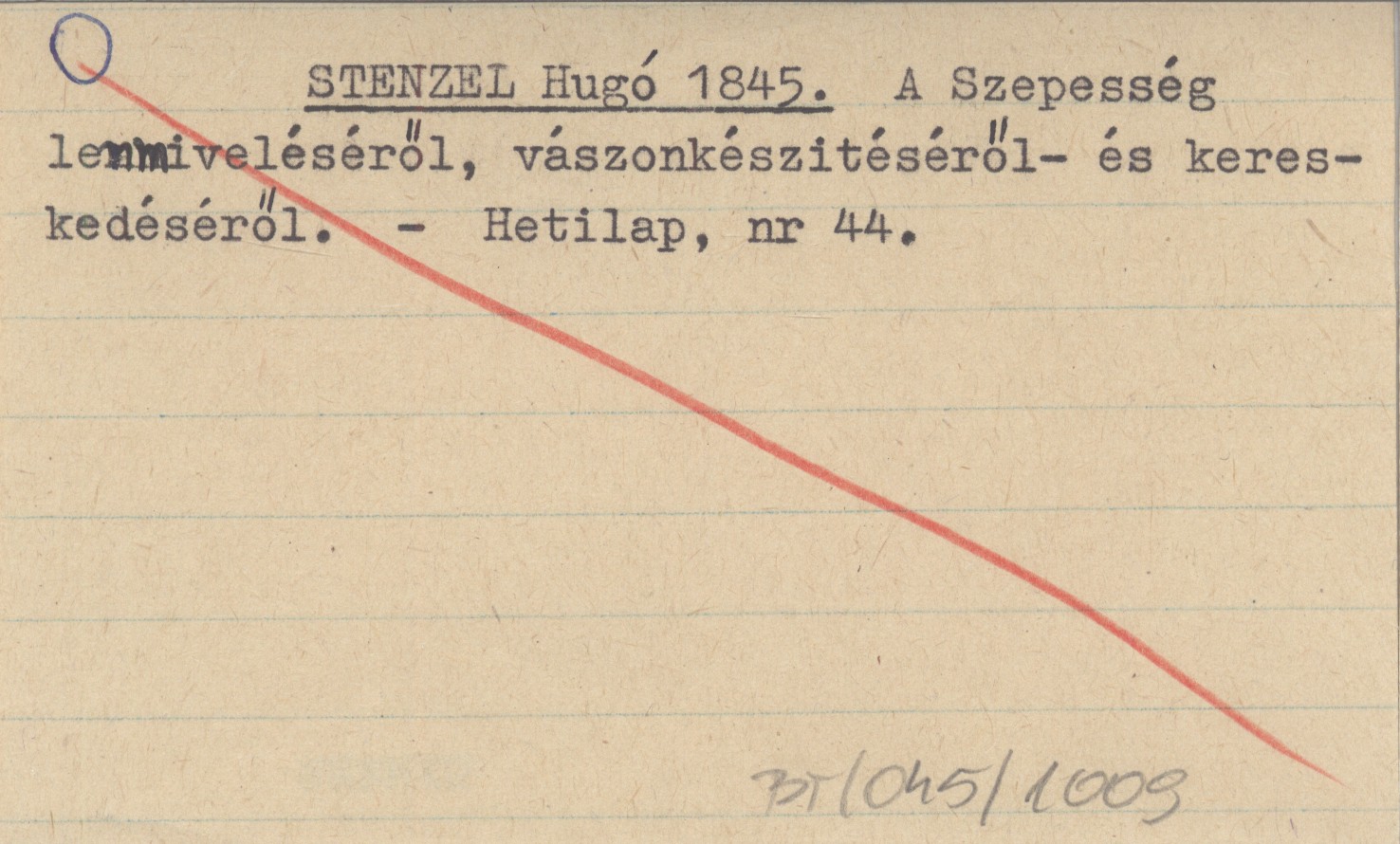 STENZEL Hugó 1845 A Szepesség lenmiveléséről, vászonkészitéséről- és kereskedéséről.