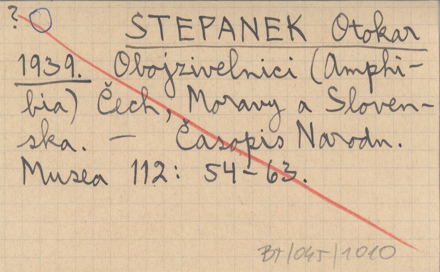 STEPANEK Otokar 1939 Obojzivelnici (Amphibia) Čech, Moravy a Slovenska.
