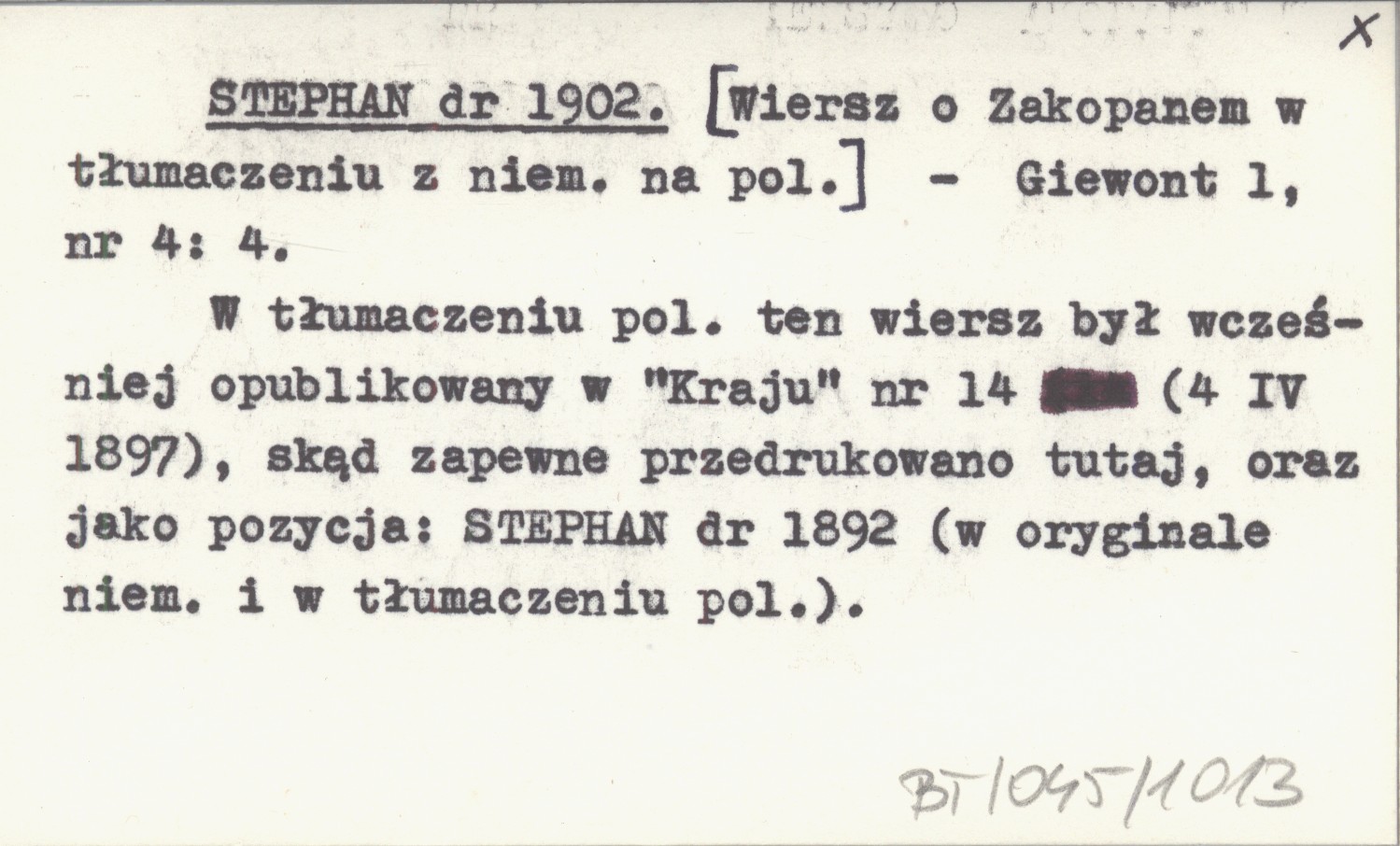 STEPHAN dr 1902 [Wiersz o Zakopanem w tłumaczeniu z niem. na pol.]